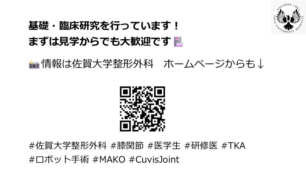 こんにちは。佐賀大学整形外科・膝関節班です。